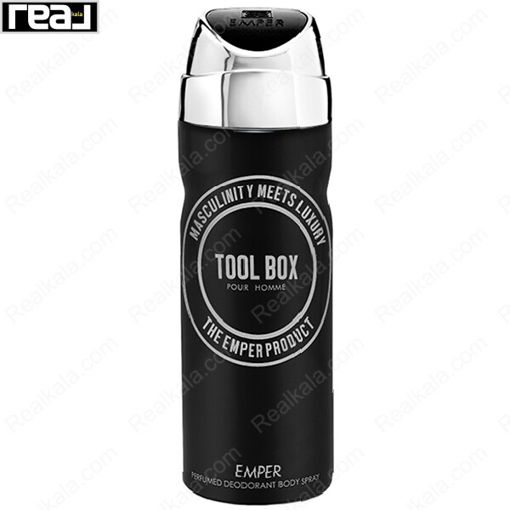 اسپری بدن Tool Box از برند امپر، محصولی اصل و ساخت امارات است که با طراحی مشکی نقرهای و شعار برجسته "Masculinity Meets Luxury" عرضه میشود. این اسپری رایحهای مردانه، لوکس و نیمهرسمی دارد و انتخابی مناسب برای آقایانی است که به دنبال استایلی قدرتمند، شیک و متفاوت هستند.
