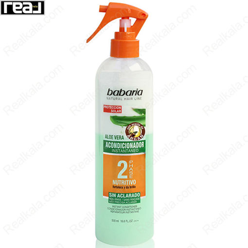 اسپری دو فاز مو باباریا Natural Hair Line با فرمول سبک و دو فاز، موها را تغذیه و ترمیم کرده و از آسیب نور خورشید محافظت میکند. این اسپری حاوی روغن آرگان و آلوئه ورا بوده و بدون نیاز به آبکشی، موها را نرم، خوشحالت و درخشان نگه میدارد. فرمول ملایم و مغذی آن، موها را تقویت و حالتدهی فوری میکند.